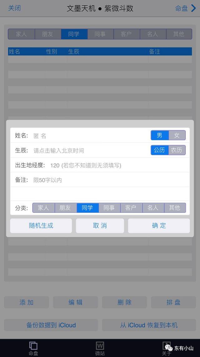 图3-3是使用 文墨天机 手机App排盘的信息输入界面。