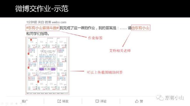 将你思考的成果发在新浪微博上,并标上 #东有小山紫微斗数# 的标签,艾特 @东有小山,我可以帮你点评一下哦,做得好的话我可以把你答案加进单独探讨问题的文章中。不用担心回答的不对,这些问题主要是想启发大家将学到的知识进行推理,增强悟性,所以大胆说出你的答案,不用担心对错,我会在后续的学习中慢慢纠正大家不足的地方。