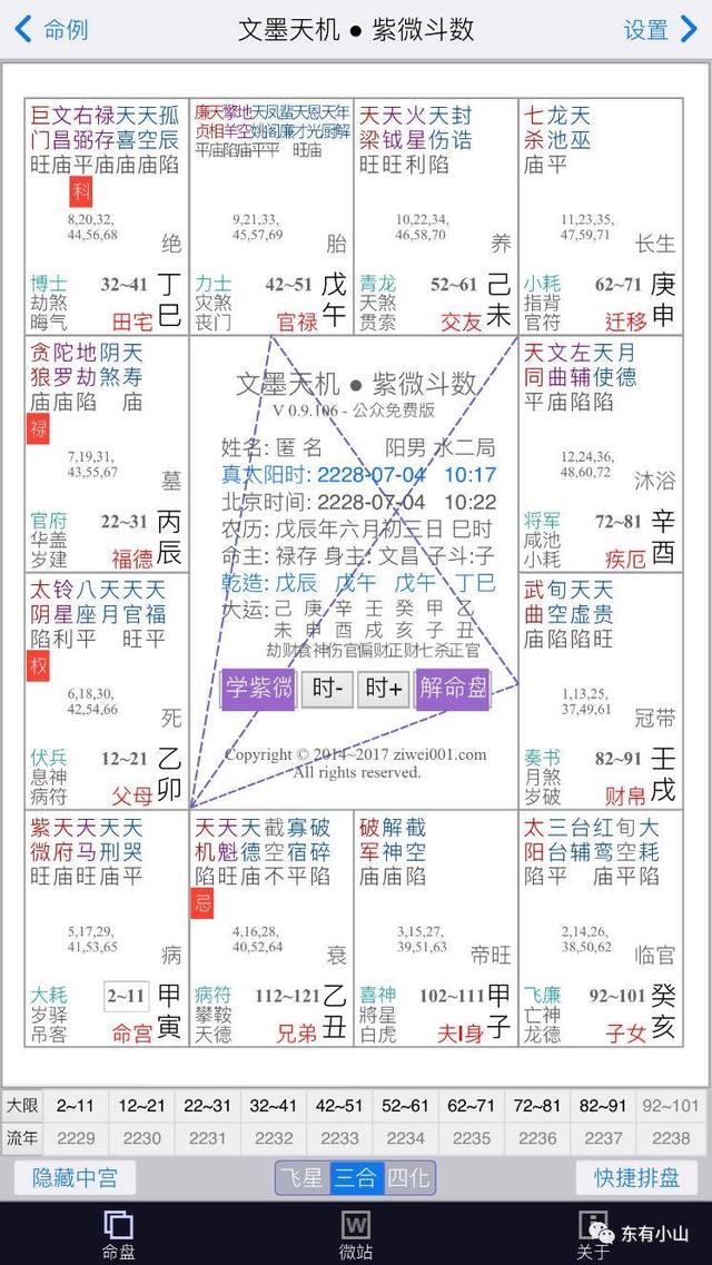 如图3-1所示是使用手机APP 文墨天机 排列的随机命盘。