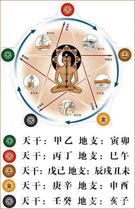 天干十个字的五行情况,木:甲己,火:丙丁,土:戊己,金:庚辛,水:壬癸。