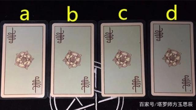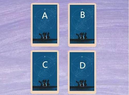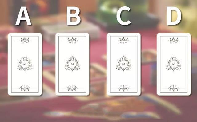 占卜规则:请在心中默念这个问题然后从下面牌中 凭直觉选出最有感觉的一张牌,切记不可反复挑选,牌从左到右依次为A、B、C、D(塔罗牌的背面都是一样的,需要你通过自己的感觉指引选择)