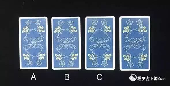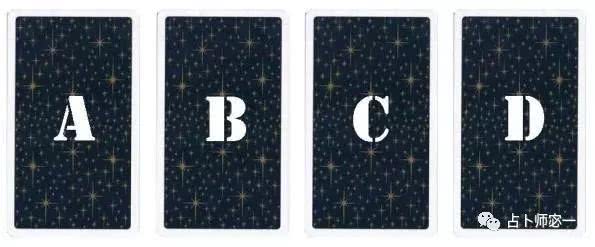 占卜选牌规则:先让自己的心平静下来,心里只想着要占卜的问题;然后凭第一感觉在下面的4张牌中选出1张最有感觉的牌,看结果如何吧!(塔罗牌的背面都是一样的,需要你通过自己的感觉指引选择)