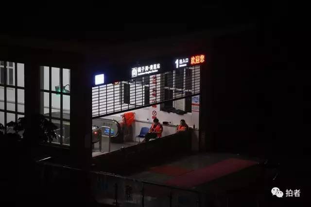 ▲7月2日凌晨1时左右,长沙市,橘子洲站内,两名身着救生衣的工作人员在值班。