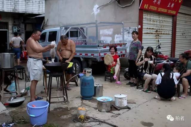 ▲7月2日19时,宁乡市,群英路,因家中被水浸泡,以及停水停电,几家人在路边架锅做晚饭。