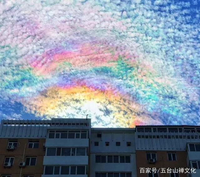 专家解释,七彩祥云是太阳光线与云彩中的冰晶结构产生的自然现象,必须得天时、地利、人和才能显现,也算是难得一见。