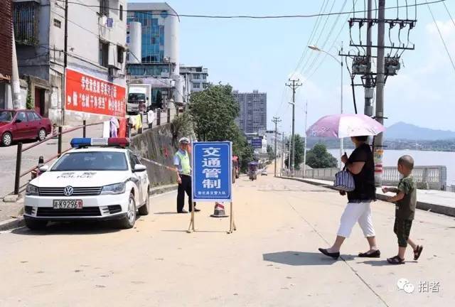 ▲7月3日11时23分,娄底市,新化县滨江北路拉起警戒线,资江水位下降。