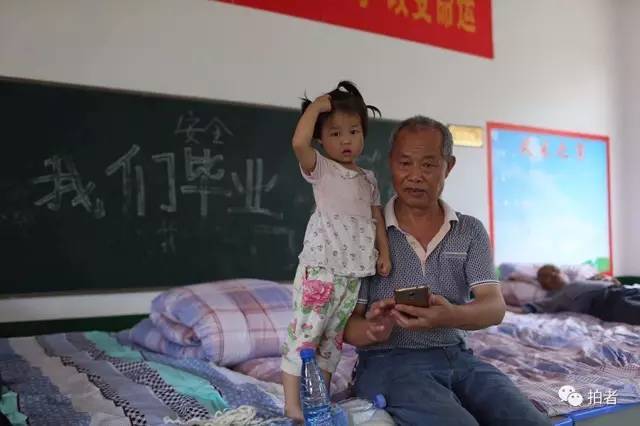 ▲7月3日12时左右,娄底市,新化县十五中安置点,67岁的周先生昨夜带着孙女来到此处。