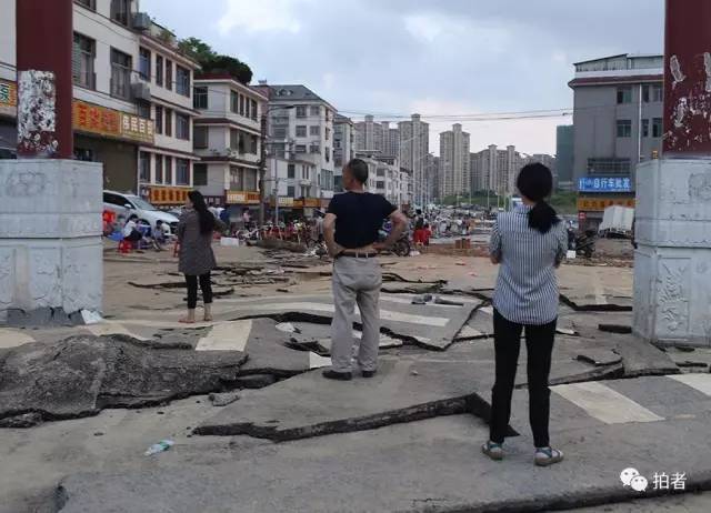 ▲7月2日18时58分,宁乡市,沙河市场的路面被洪水冲击后,叠加在一起。