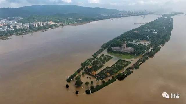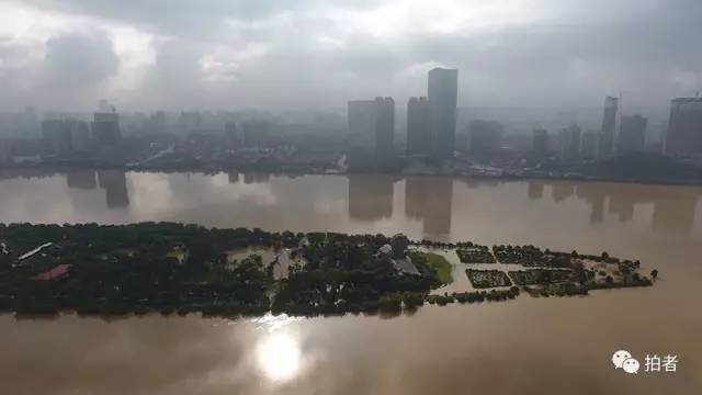 ▲7月2日上午9时,长沙市,上涨的河水漫上了橘子洲。