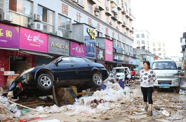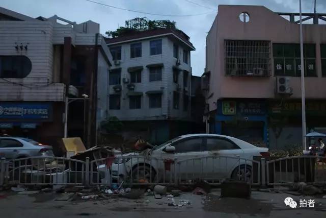 ▲7月2日17时36分,宁乡市,明兴路市场,被洪水冲击后的街道。
