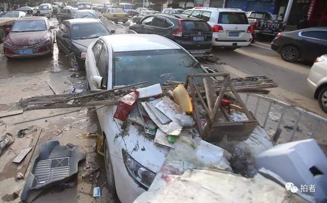 ▲7月2日18时09分,宁乡市,沙河市场内,被水浸泡的货车和建材。当时的水位达到5米深,车上还有洪水留下的印记。