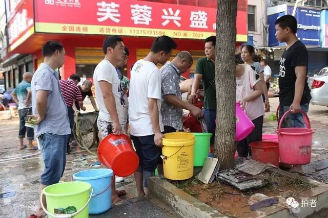 ▲7月2日17时31分,宁乡市,大面积停水停电,居民打开消防栓,自行取水。