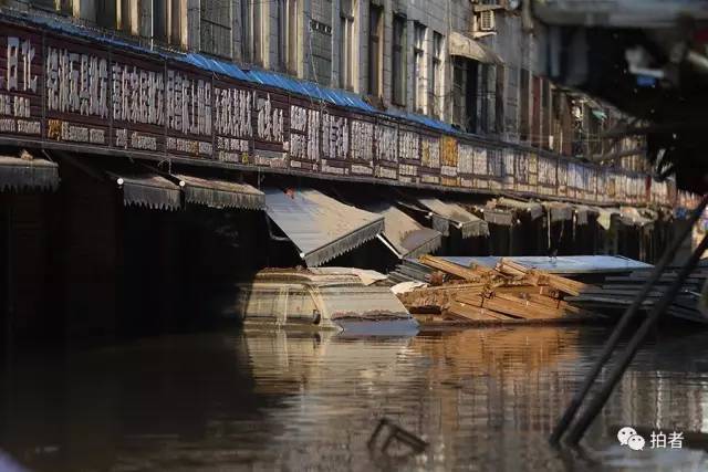 ▲7月2日18时41分,宁乡市,沙河市场内,一层底商仍被洪水浸泡。楼上大部分住的是商户,两日来停水停电,居民靠相互喊话,向岸边的家人送所需的物品。