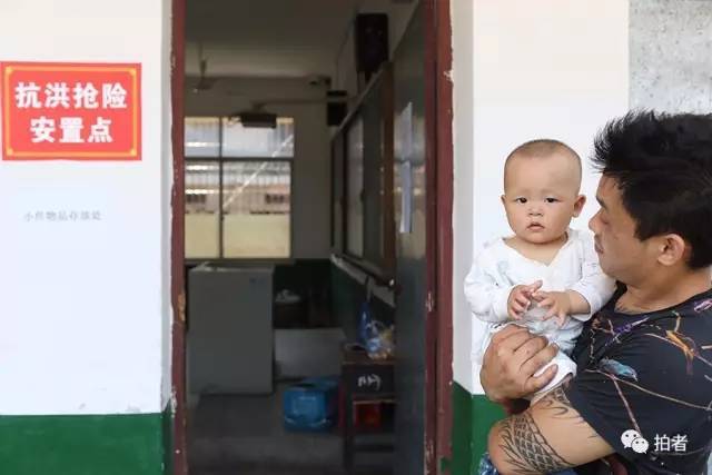 ▲7月3日12时左右,娄底市,新化县十五中安置点,杨先生带着小儿子在安置点玩耍。