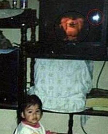 据说这是一对台湾夫妇给宝宝拍照,当把电视关掉后就出现了这张脸..十分的怪异和恐怖,细看之下其实有点像猪头,这才是最恐怖的。