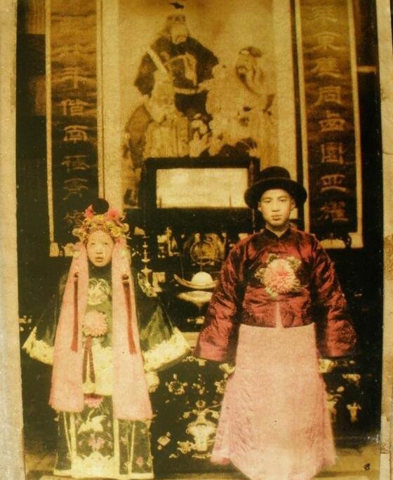 日前,网上流传出了号称中国最恐怖的一张照片,是一张十分诡异的清末结婚照,有人说这个女子其实是一位吊死鬼,在和这个男的实行冥婚。这张照片的色彩十分的诡异,给人以阴森怪异之感,网上还描述说如果仔细看照片中的女子,会发现她好像没有双腿,而且没有右手...