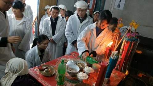 据说,要是人在去世的时候,他们将嘴巴大张着,其实是口渴了,这时一旁孝顺的儿女们,便会为死者准备一些温开水,慢慢的将其喂进嘴里。